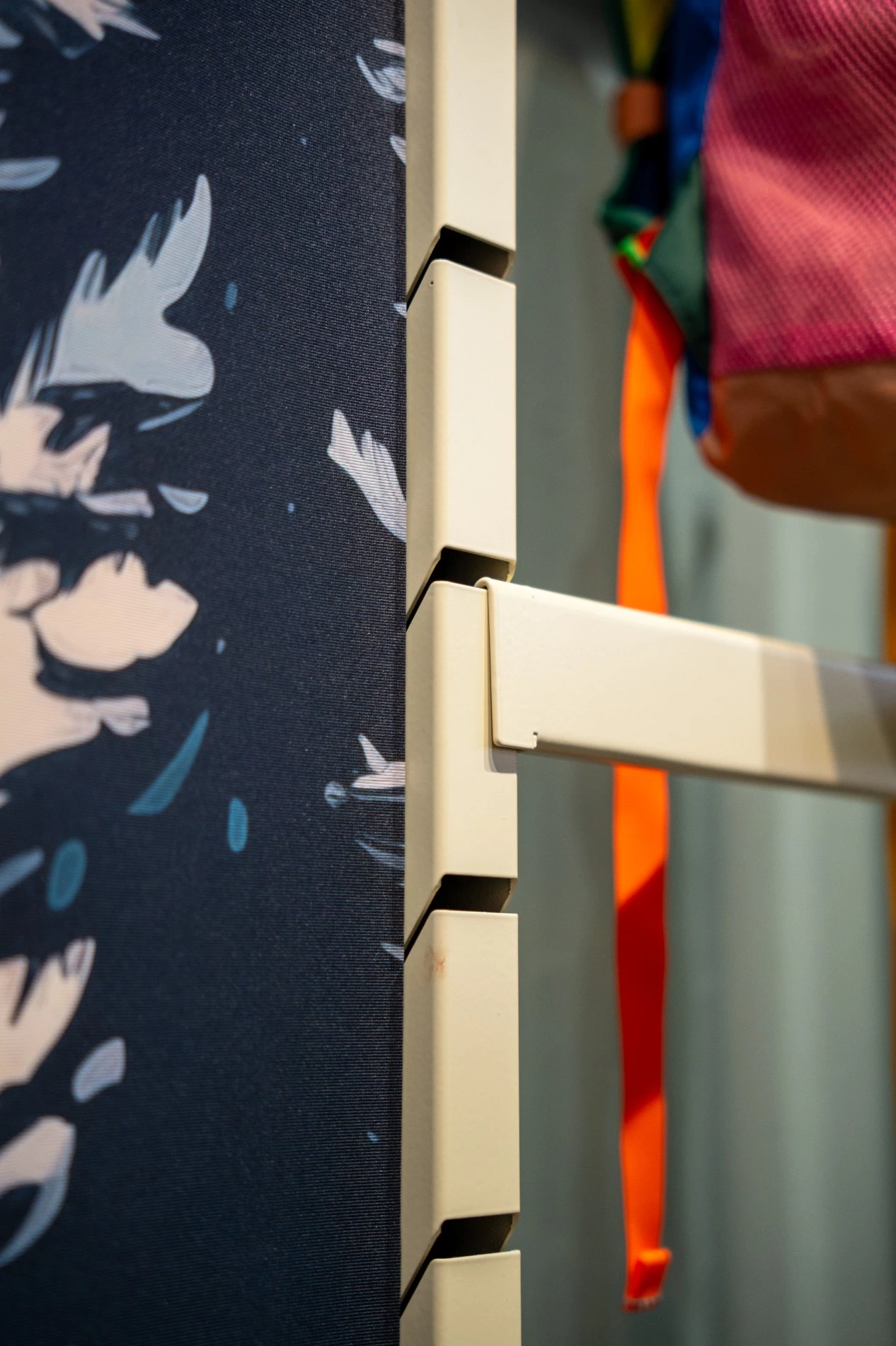 Visuel imprimé sur toile suspendue pour créer un décor de fond